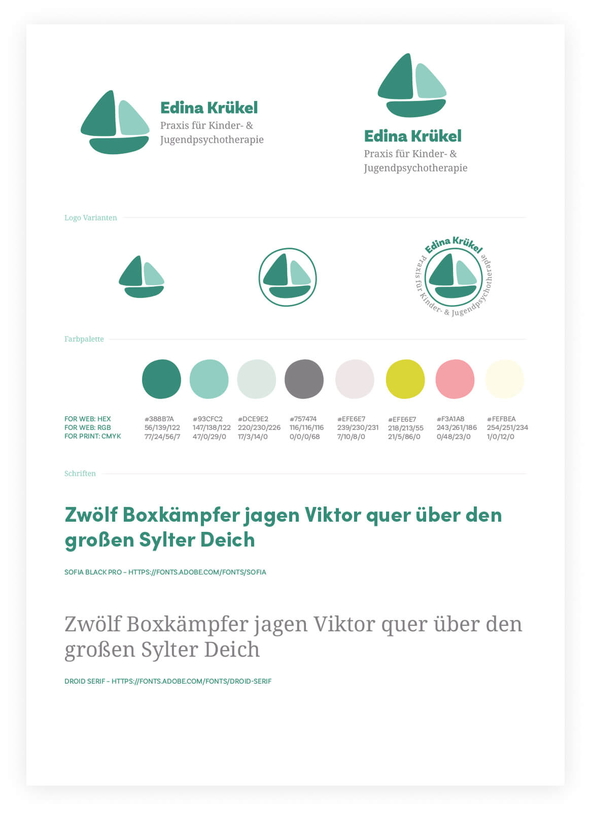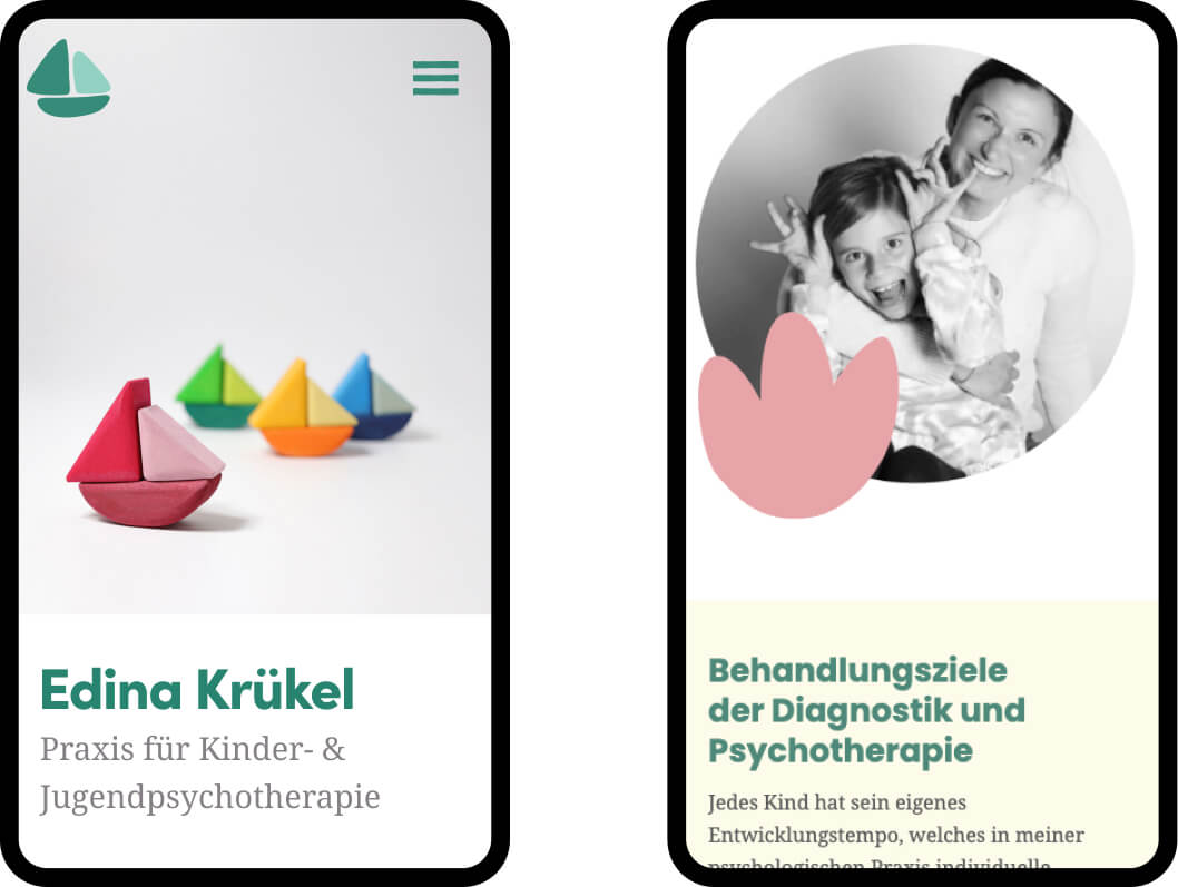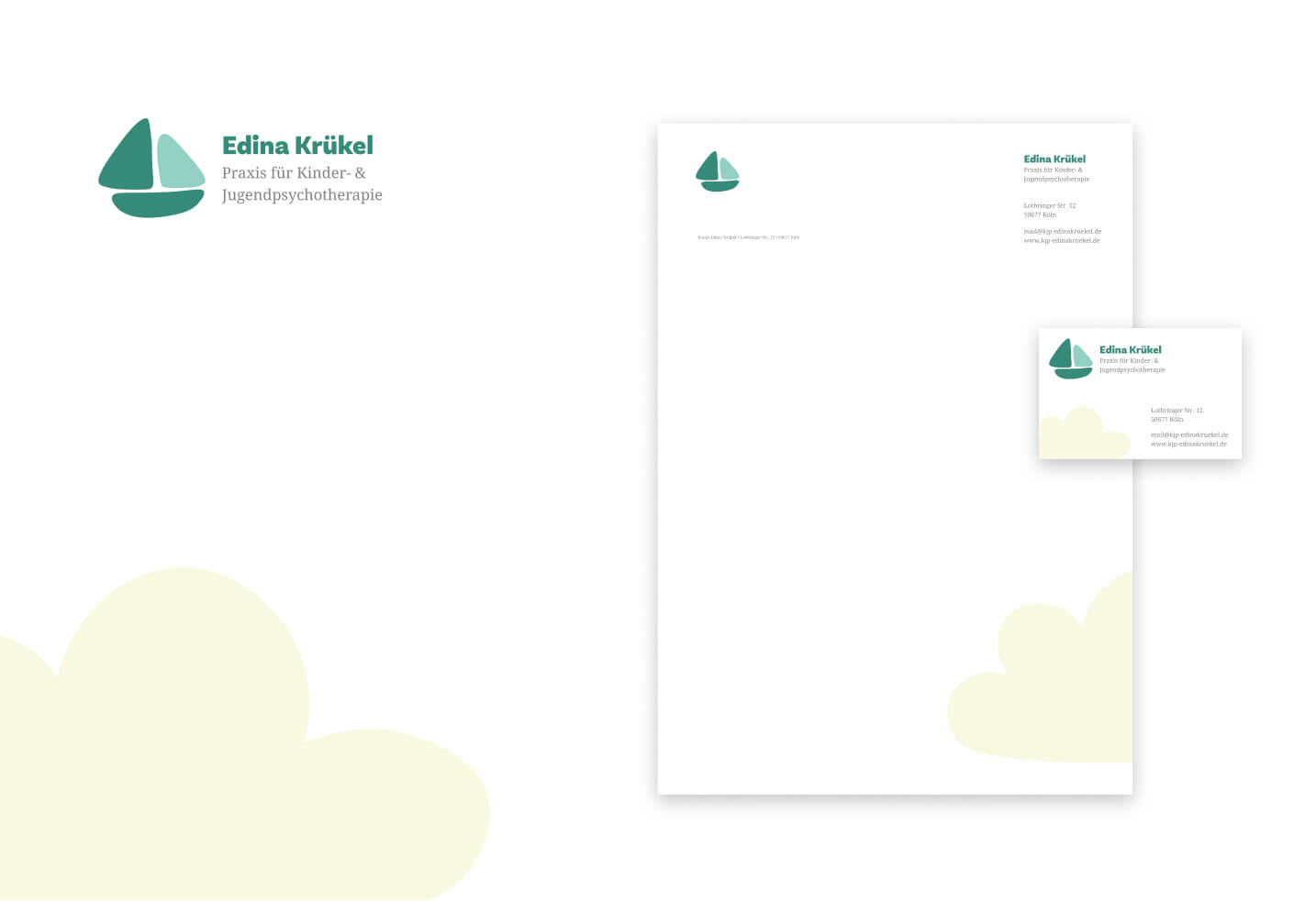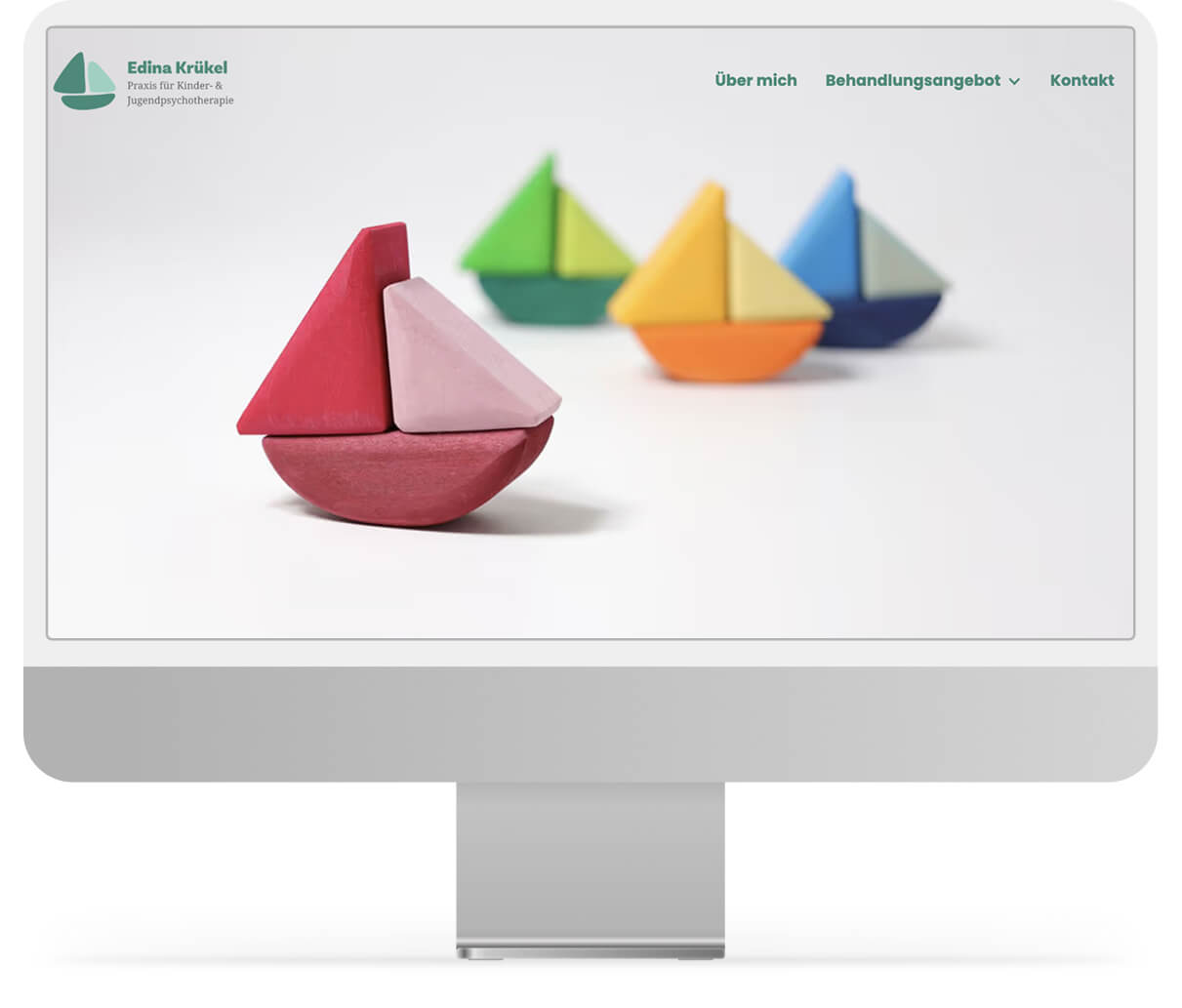 Für die Praxis für Kinder- und Jugendpsychotherapie Edina Krükel entwickelten wir ein ganzheitliches Erscheinungsbild – vom Logo und Corporate Design bis zur Website. Ziel war es, eine visuelle Identität zu schaffen, die sowohl Kindern und Jugendlichen als auch Eltern Vertrauen vermittelt: freundlich und zugänglich, zugleich ruhig, professionell und nicht „kleinkindhaft“.