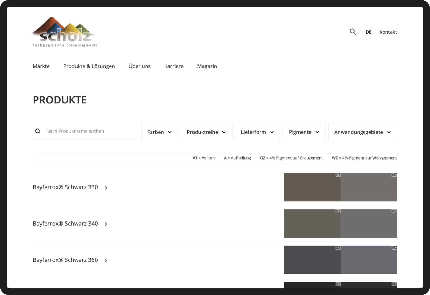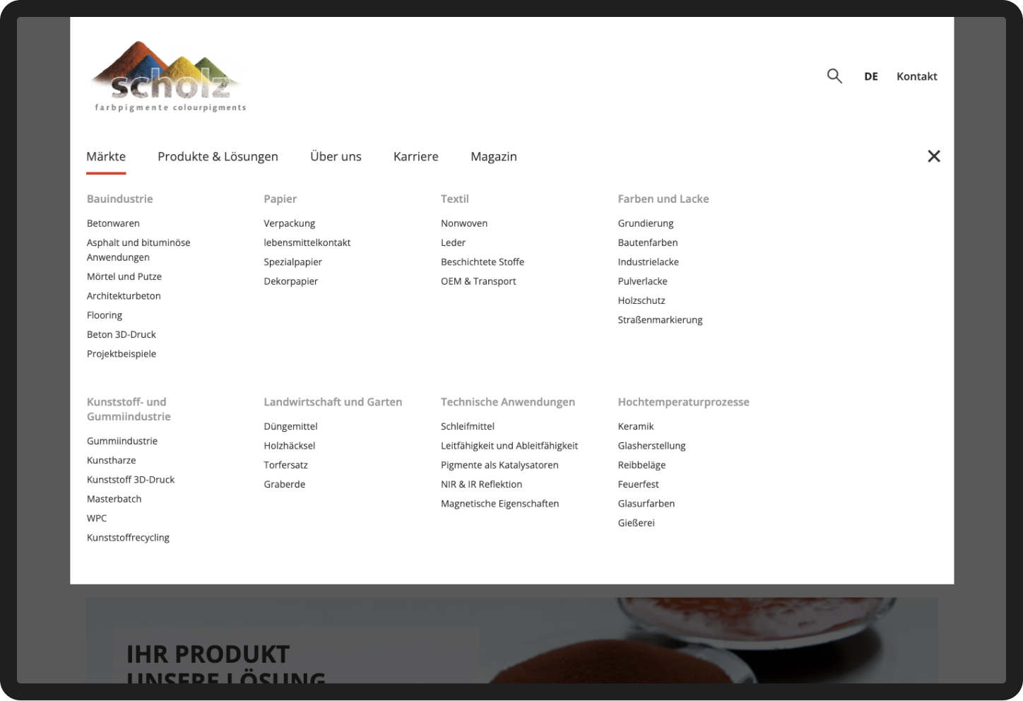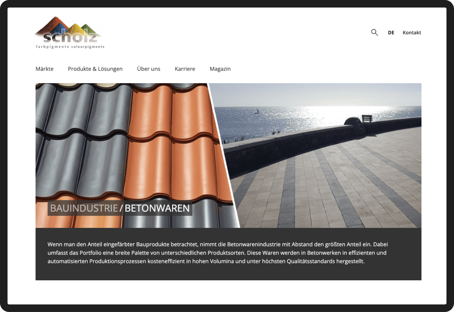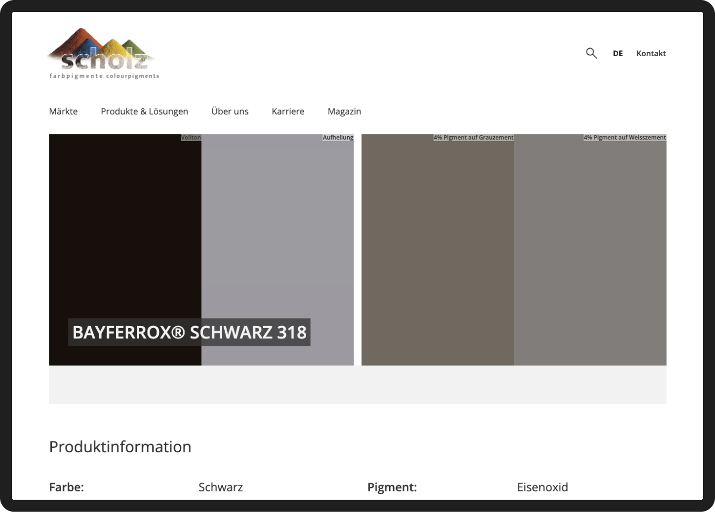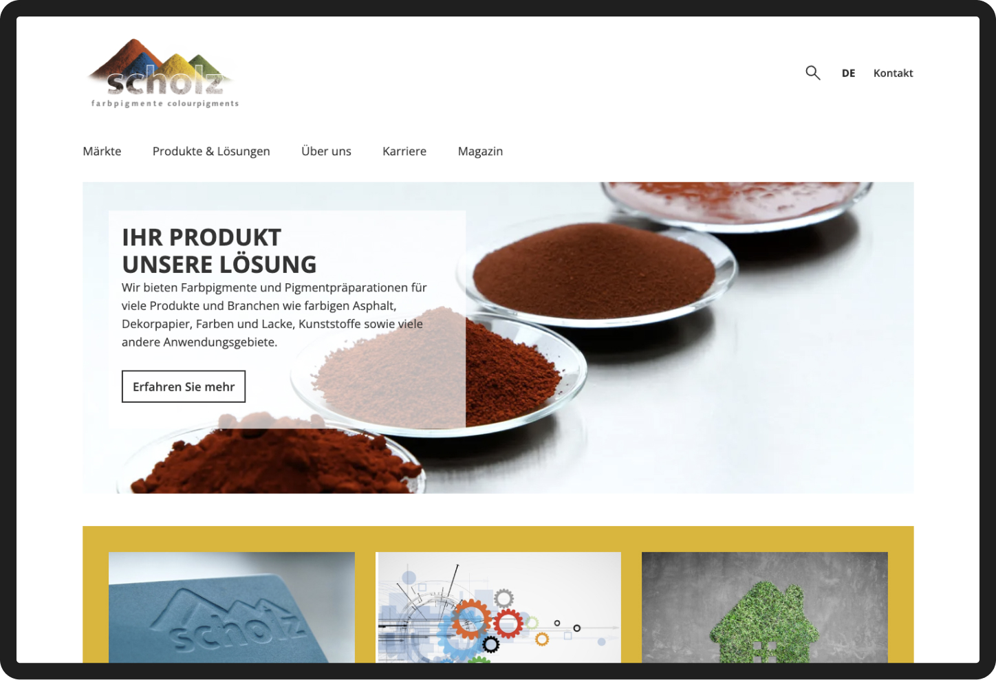 Durch diese langfristige Zusammenarbeit wird die Marke Scholz Farbpigmente digital klar, hochwertig und international stimmig präsentiert.
